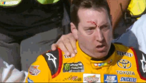 After Kyle Busch's No. 18 car was sent spinning in a wild wreck after making contact with driver Joey Logano as they ...